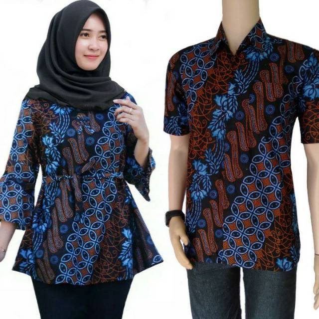 Name: Batik Couple Pria Wanita Modern Terbaru Atasan Batik Seno Biru Terlaris Asli Batik Pekalongan M L Xl